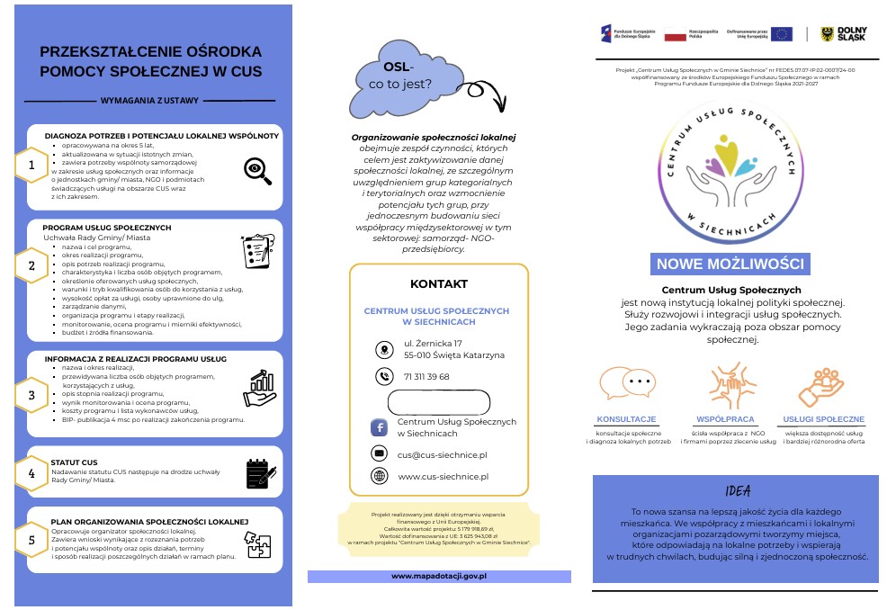 „Centrum Usług Społecznych w Gminie Siechnice” nr FEDS.07.07-IP.02-0007/24-00, realizowanego w ramach programu Fundusze Europejskie dla Dolnego Śląska na lata 2021-2027 Priorytet 7 Działanie 7.7 Usługi społeczne i zdrowotne, 7.7.B Tworzenie i rozwój CUS.