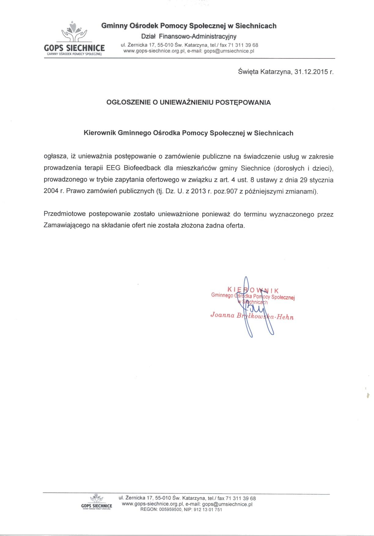 Niezbędne dokumenty do pobrania w ramce. Do pobrania Zapytanie ofertowe Wzór oferty do edycji Informacja o unieważnieniu postępowania